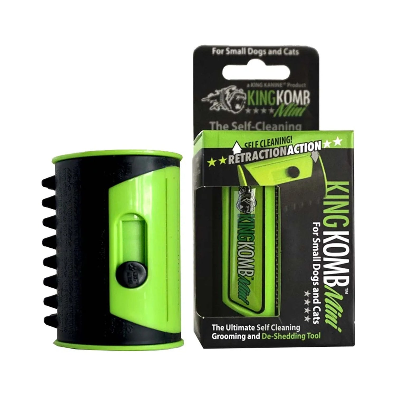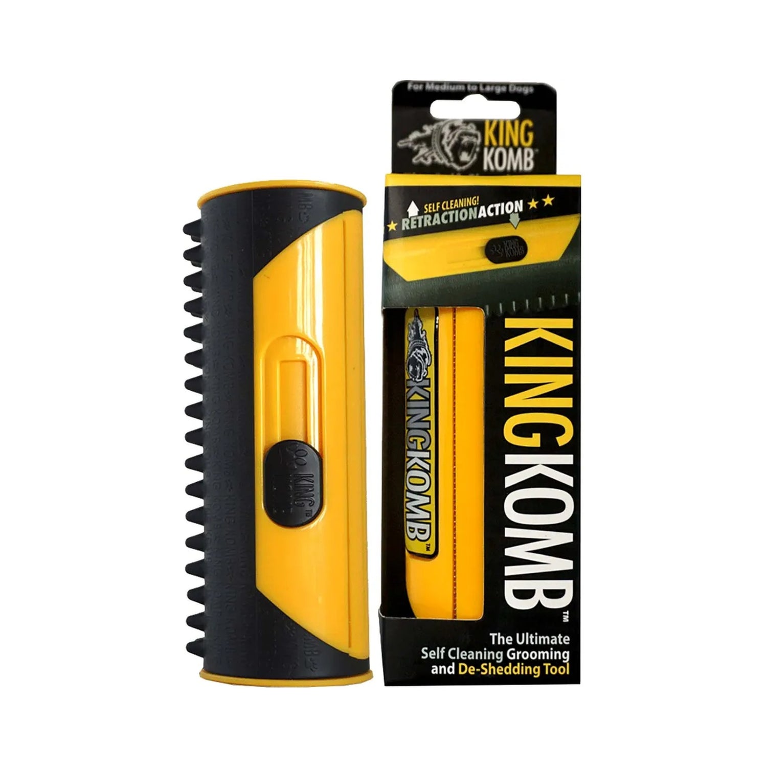 King Komb Retraction Action gør pelsplejen både nemmere, hurtigere og mere behagelig for din hund.