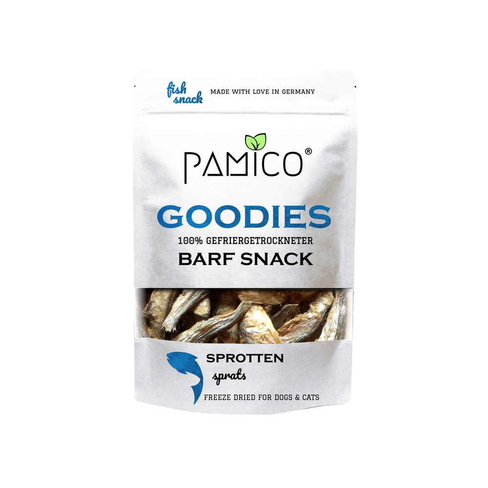 Pamico frysetørrede brislinger er hele små fisk, fyldt med protein, sunde fedtsyrer og vigtige vitaminer. De er skånsomt frysetørret, så både smag og næringsstoffer bevares – helt uden tilsætningsstoffer.